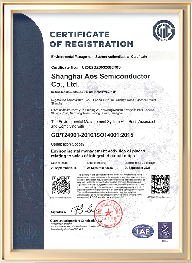艾欧斯产品均符合欧盟RoHS、REACH、SGS环保指令标准,并通过ISO9001,ISO14001质量管理体系认证。积极致力于半导体产业的持续发展,运用高新技术领域的专业经验,结合自身技术优势,可靠性测试方面建立了完善的质量管理体系,并拥有强大的FAE团队支持能力,能帮助客户快速完成产品设计导入。为建设和谐与高效率的社会提供高端卓越品质的产品和系统解决方案,实现整个产业链的共赢。